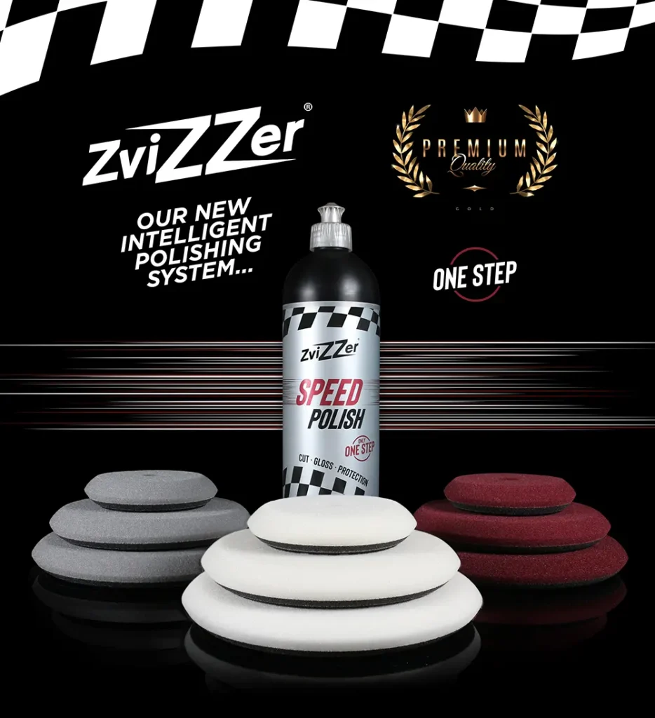 Zvizzers nya polersystem Speed Polish är ett system i perfekt balans och gör poleringen enklare än någonsin. Polersystemet är ett 1-stegs system som gör att du får ett perfekt resultat av polering i ett steg, dvs man behöver inte efterpolera med ett finare polermedel på grund av att resultatet inte är bra nog. Detta sparar tid och pengar!